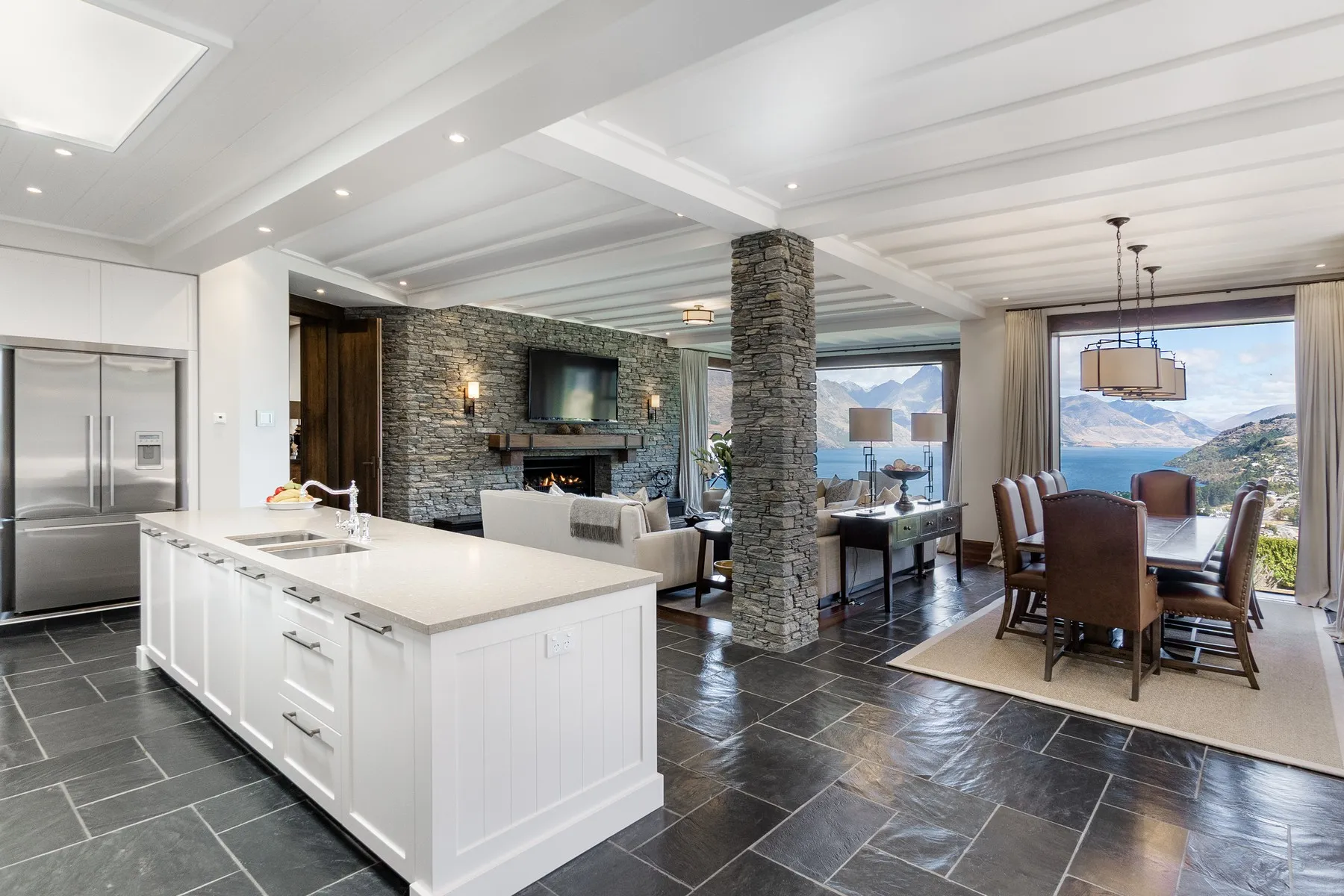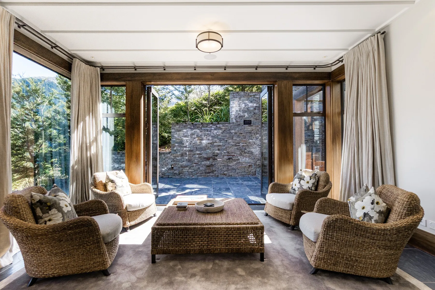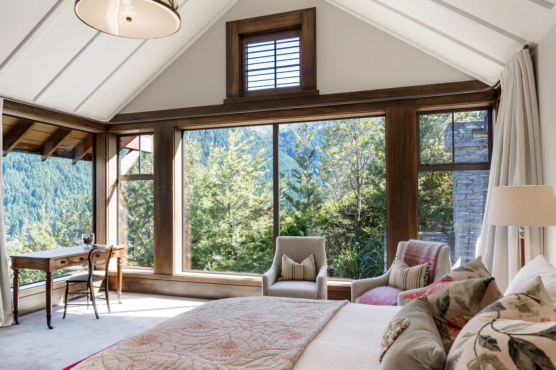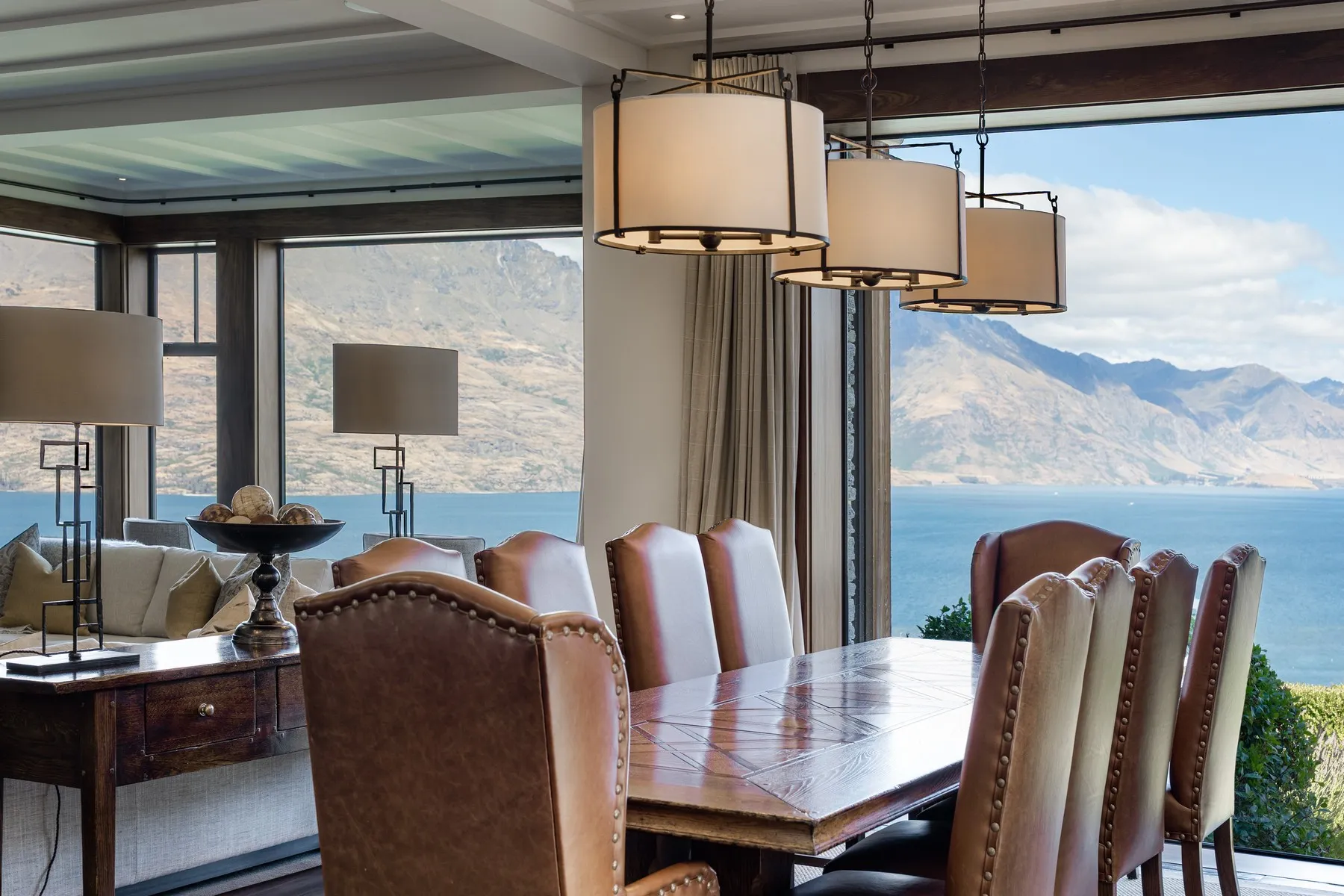 The best place to watch the sunset, however, is the covered patio, where there are stunning views of Queenstown and the surrounding landscape, as well as a fireplace to stay warm year-round.