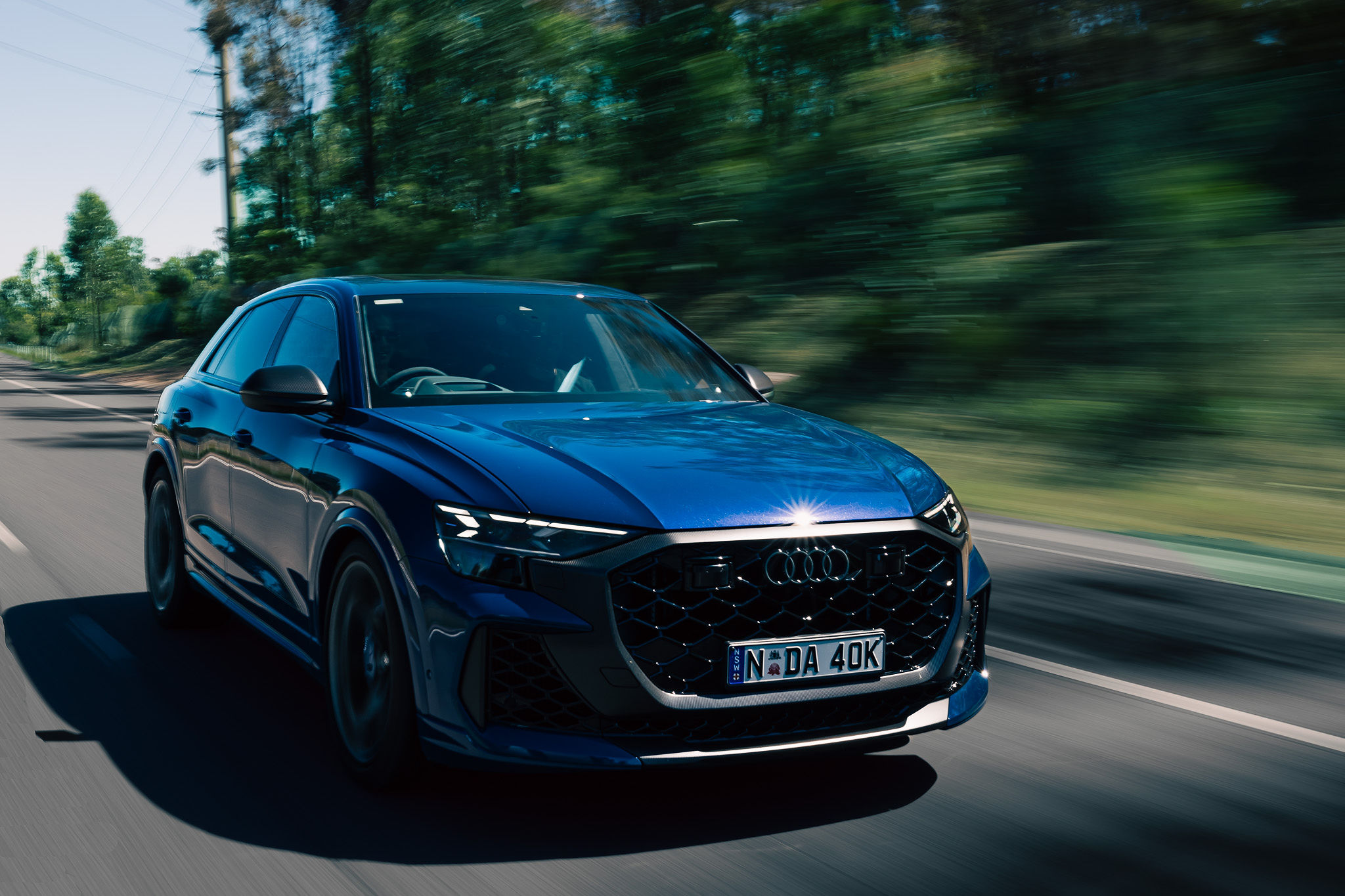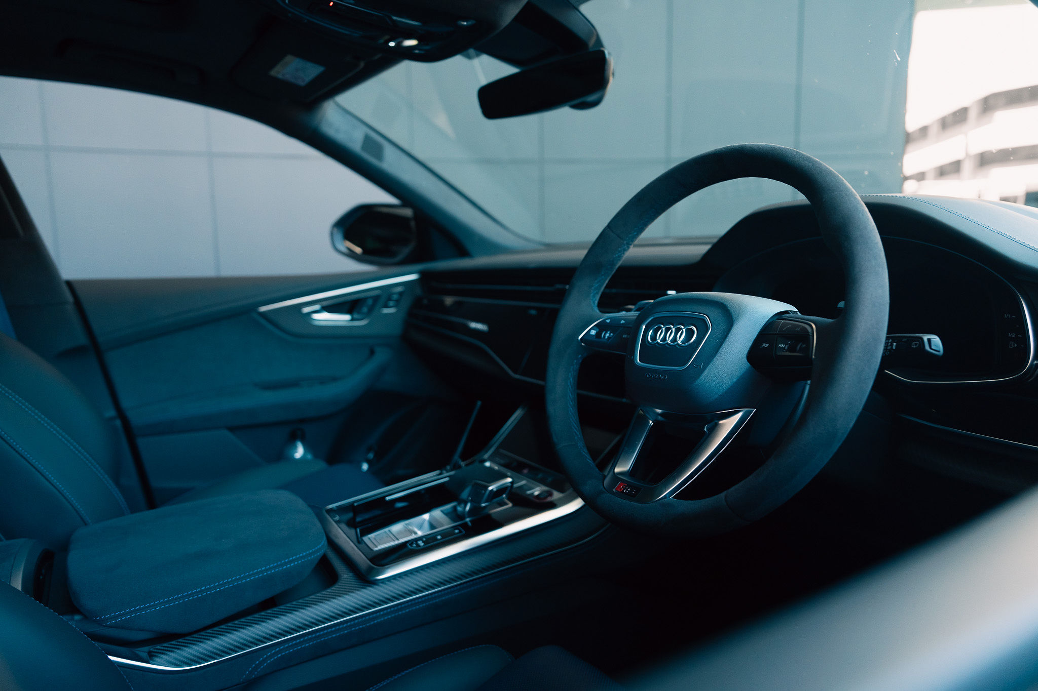 Still, befitting a vehicle with cojones, the Audi does visually announce itself on the tarmac, flaunting a bold grille pattern, HD Matrix LED headlights with selectable signatures and 23-inch wheels—without emitting too much gaudy, Premier League footballer energy.