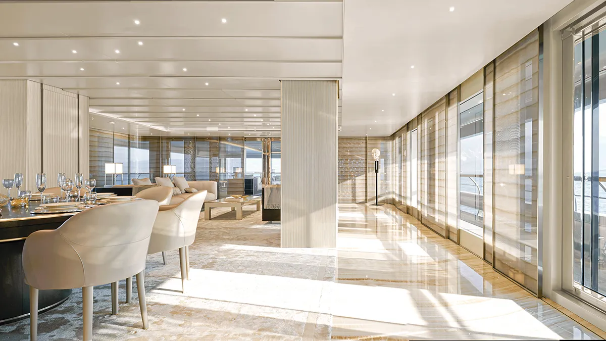The A100 offers the interior volume of a similar-sized mega-yacht, too.