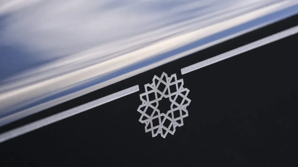 The laser-etching is patented, Rolls-Royce says, and it took five years to develop the intricate process that includes multiple layers of clear coat, which sit on top of a dark coat of paint. A lighter coat of paint is on top of all that, and the laser etches away the lighter paint to create the pattern with darker paint underneath. The laser makes etching to a depth as low as 145 microns. The resulting work of art is then sanded to create the finish, which, in the case of the Phantom Arabesque, is a mashrabiya design. That motif continues inside, with a bespoke centrepiece.