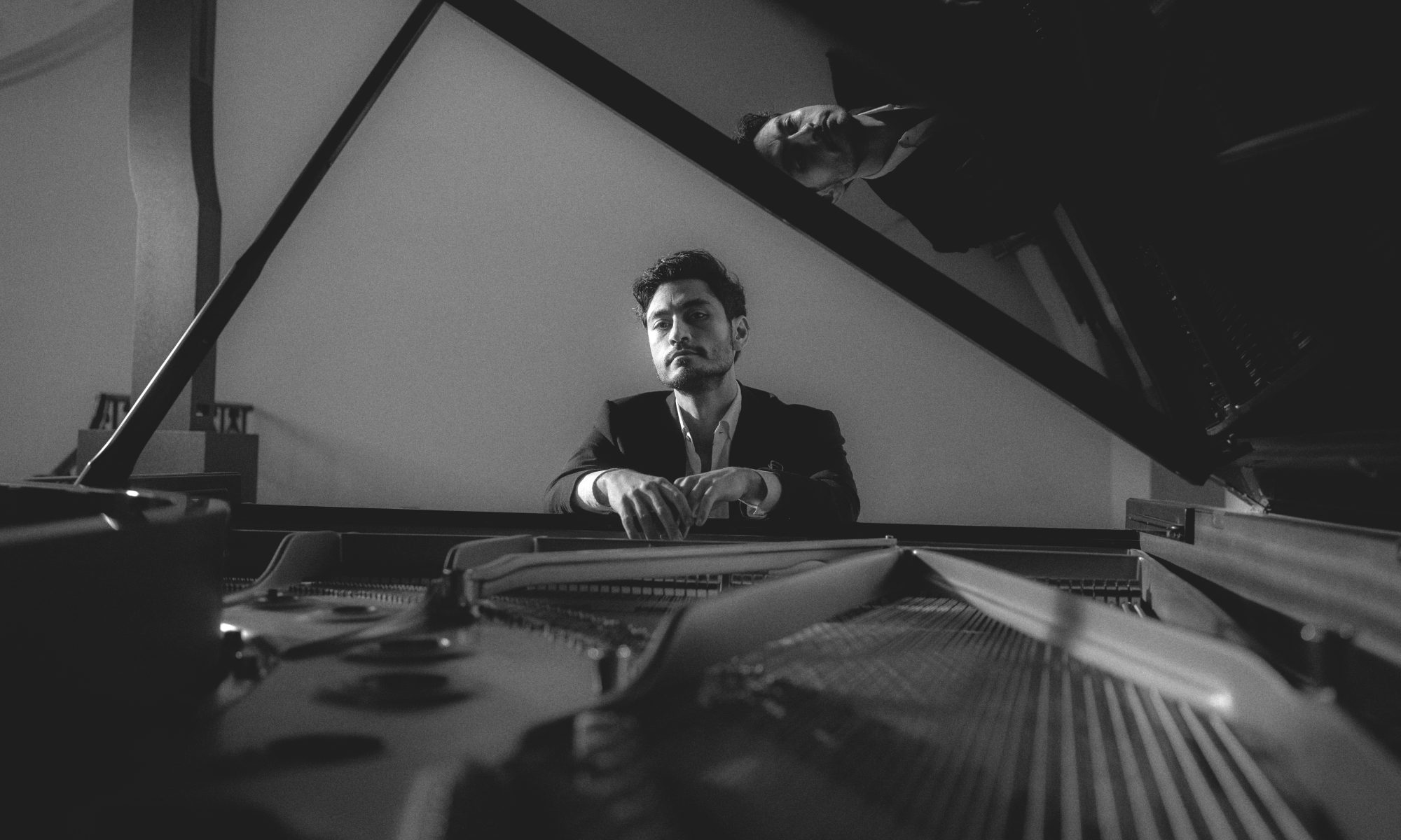 When he was growing up in Dubai in the 1990s and early aughts, there was nowhere to obtain classical sheet music. “So I would find a library in Uzbekistan that had uploaded it in pdf format, and every single day I would send something to my father, who printed it out from his office computer,” he recalls, sitting in a basement practice studio in London’s Soho, where the walls and ceiling are covered in ornate sound-muffling wallpaper. “Every night it was like Christmas. I can still smell the photocopies.”