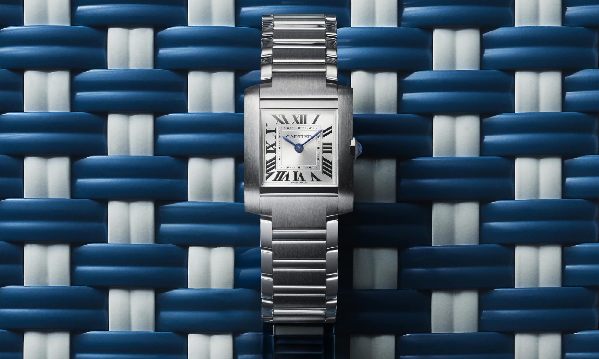The refreshed Tank Française is available now through Cartier boutiques; cartier.com