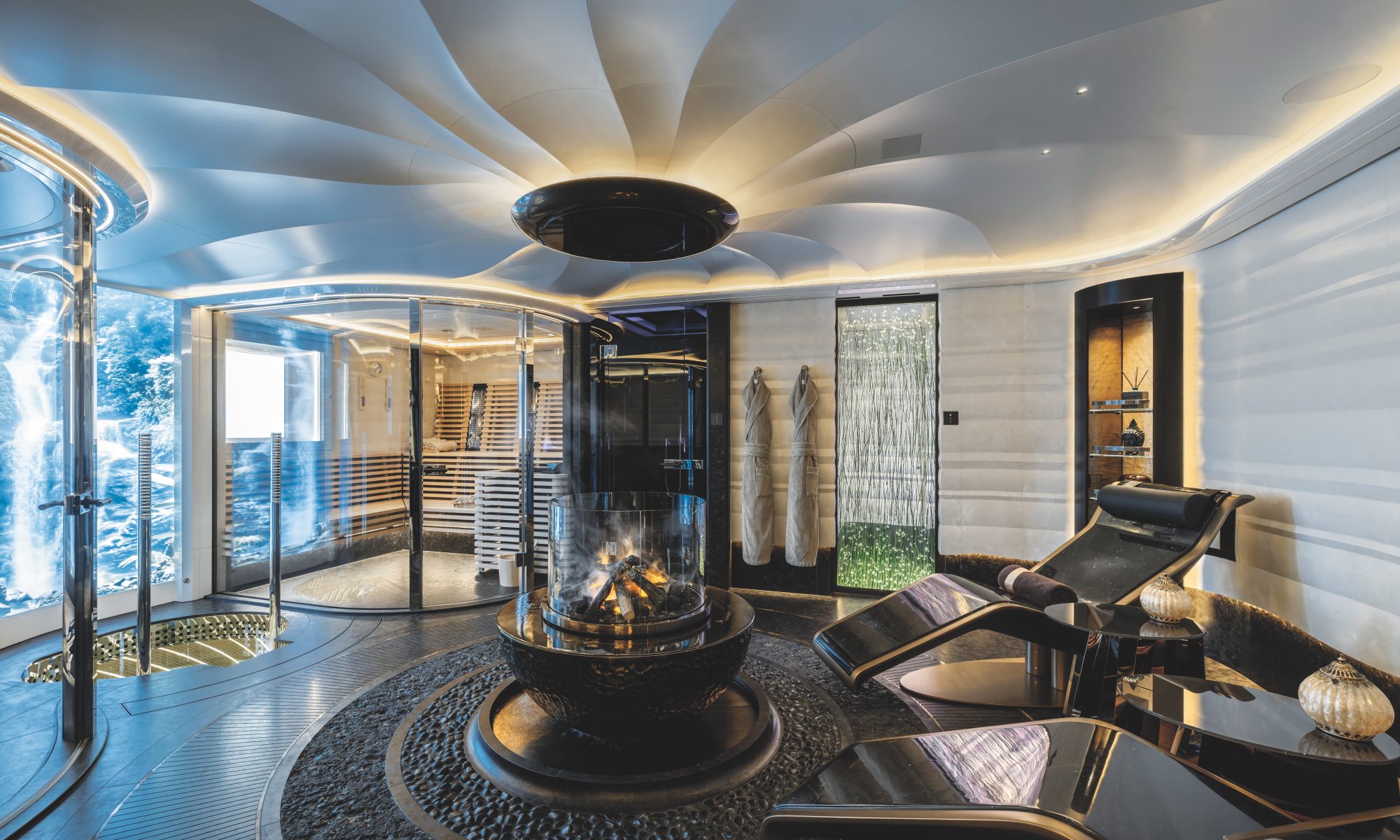 The $2.8 trillion global wellness market is having its day in the sun—especially at sea. The trend is one of the most noteworthy in yacht design, moving away from the stereotypical image of a gin-soaked party palace. Saunas and steam rooms are the new popular gathering spaces on yachts over 40 m, while gigayachts raise the stakes with indoor lap pools, beauty salons, cryotherapy and even the occasional snow room.