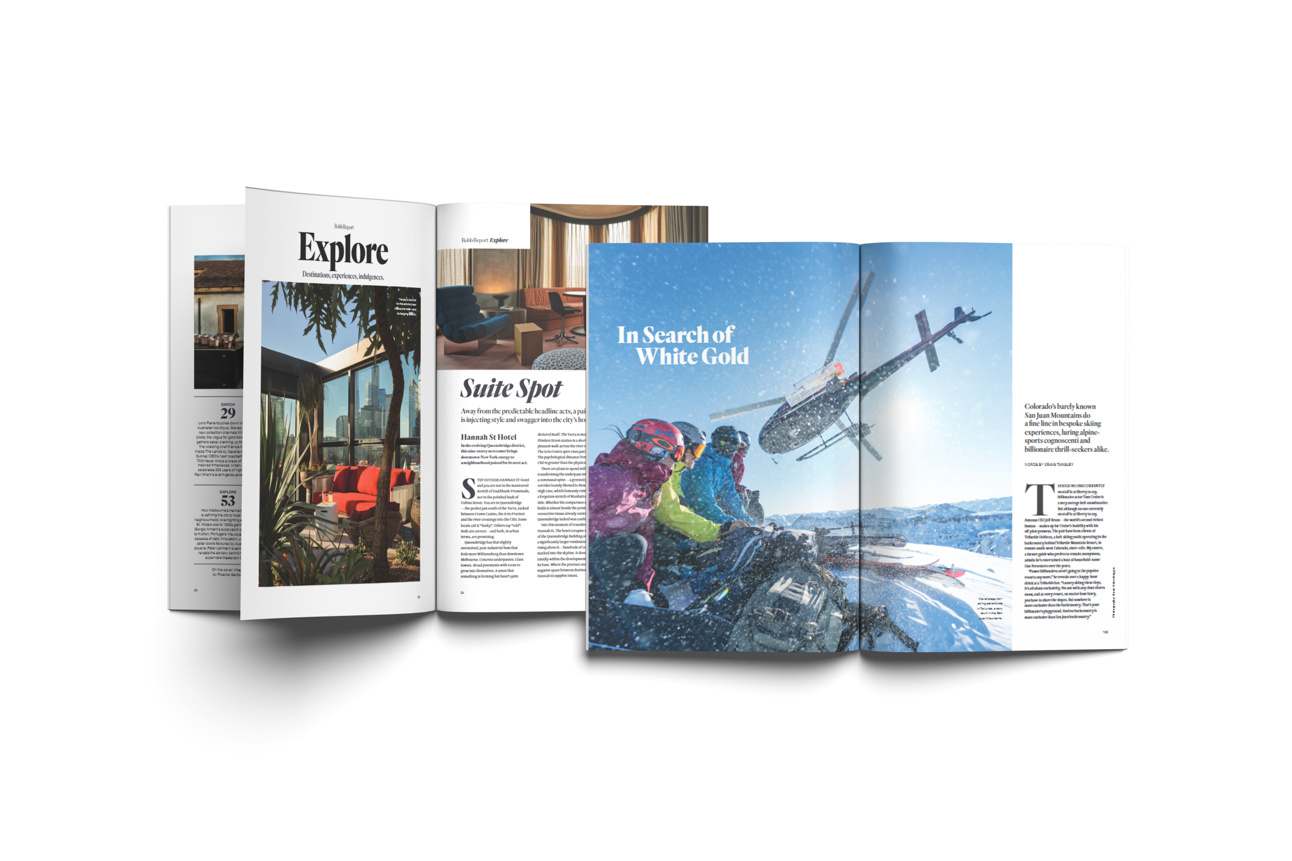 Elsewhere, the issue moves with intent. We check into the cliff-top spectacle of the Maybourne Riviera above Monaco; venture deep into Indonesia’s Raja Ampat, one of the planet’s last great marine frontiers; and head to Colorado’s remote San Juan Mountains, where untouched powder remains the preserve of those who know how to reach it.